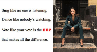 We ran this little poll on Twitter before the GOP "leaked" the dance scandal video, asking why Ocasio-Cortez is the most popular member of Congress on her first day. Remember when we remarked how her tweeter feed had 1.62 million followers? That was on Christmas Eve. As I write this post she's up to 1.82 million followers-- an increase of 200,000. That's 200,000 more mean nd women who she will be able to reach everyday with her ideas. Anyway, here's the poll we did Thursday: