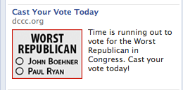 The DCCC is running this Facebook ad, asking people who the worst Republican is, John Boehner or Paul Ryan? The DCCC has worked diligently to protect both men and have consistently undermined grassroots Democrats who have opposed them. These people have no shame-- none whatsoever... but they do want your e-mail address so they can spam you with deceitful requests for money.