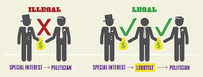 The graphic at the top of the article reminds me of Robert J Ringer's Winning Through Intimidation, which was all about inserting one's self in between two parties and "facilitating" deals while taking from both parties. The book came out during the Nixon/Ford administration, and one might make a good case that is it a motivation for the PAC system which has sprung up from about that same time. "Plausible deniability" was a popular term back then, and such a system as Ringer postulated would have fit in nicely - and grown right along with the politics of greed.