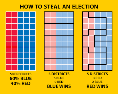 I remember, many years ago, someone suggesting that California-- the biggest blue state-- and Texas-- the biggest red state-- both dump gerrymandering simultaneously. Texas wasn't paying any attention and eventually California went ahead on its own and legislated that district lines would be drawn by a non-partisan commission. Texas is still one of the half dozen or so most corruptly-gerrymandered states in the union-- along with North Carolina, Ohio, Pennsylvania, Virginia, Florida, Michigan and Wisconsin.